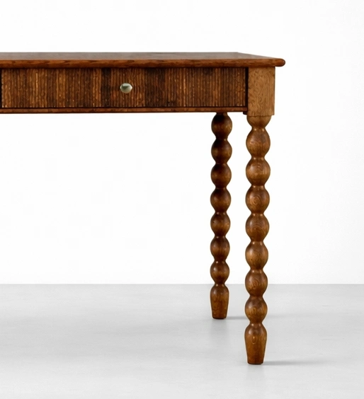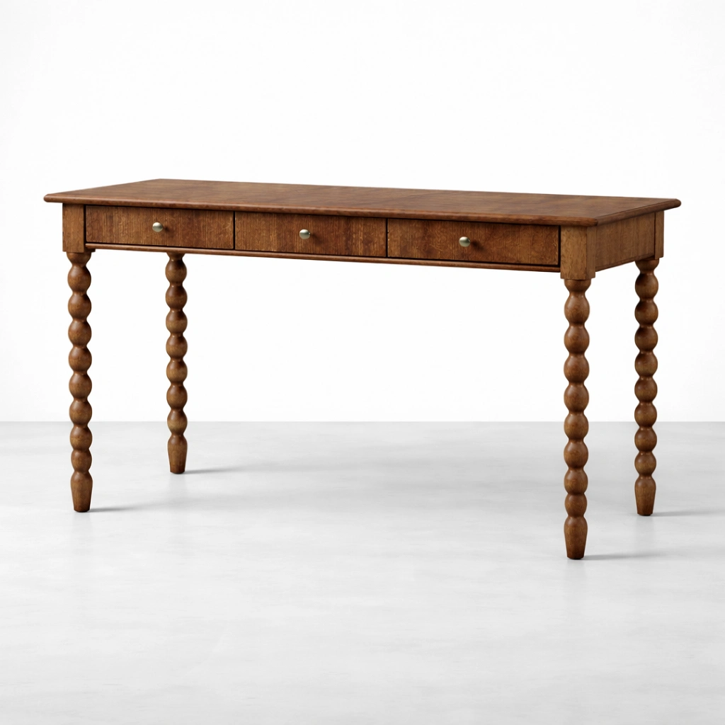The turned bobbin-style legs give this study table a softer decorative touch while still keeping the silhouette practical and usable for modern homes. It can be placed in a bedroom corner, study room, library setting, or home office and will blend well with both classic and modern interiors. The warm wooden finish adds comfort to the room and makes the desk feel naturally inviting.